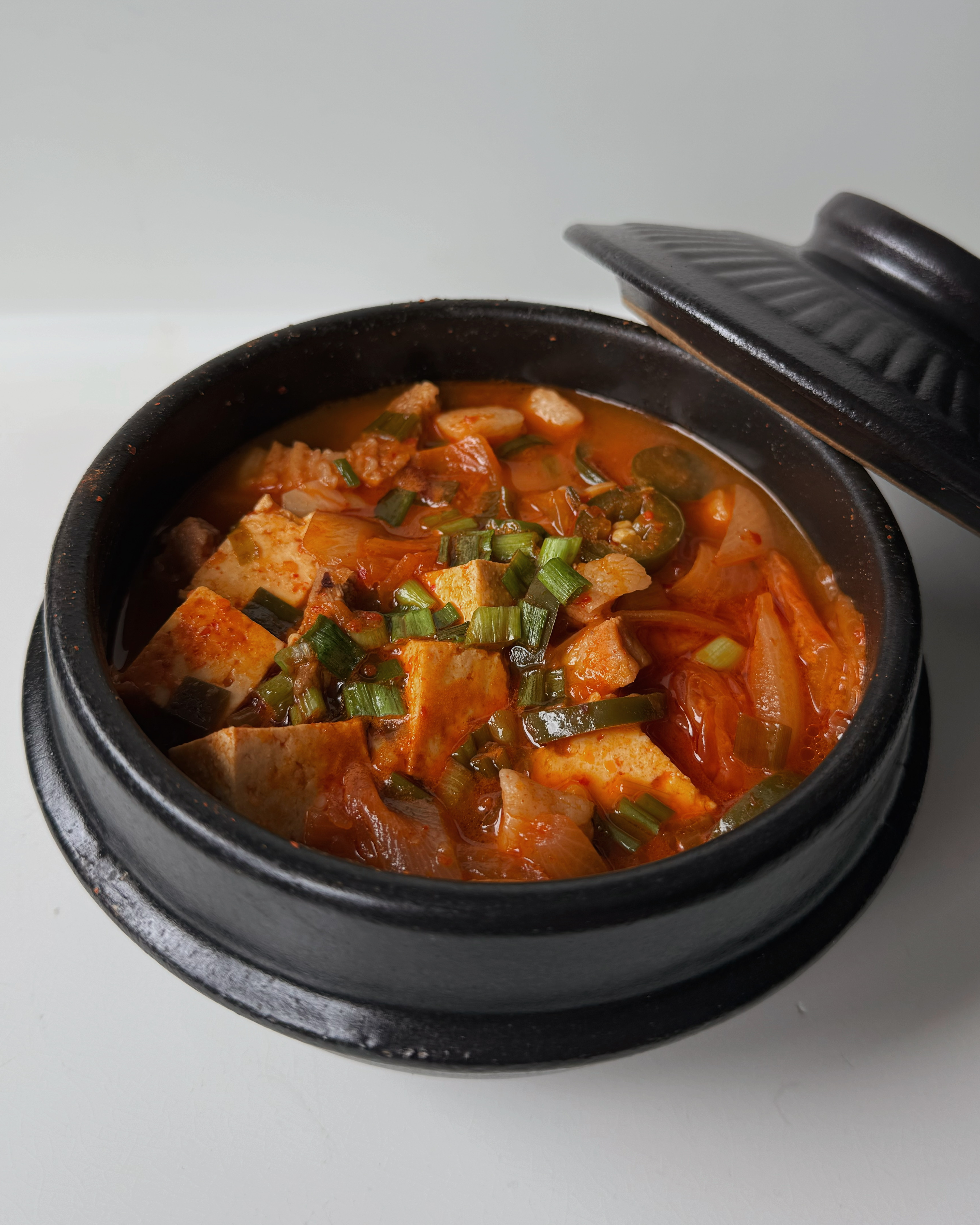 adding as much kimchi as you want along with its juices. Then add some water OR chicken broth for better flavor, a splash of fish sauce, the gochujang paste, and gochugaru. Let this boil for 15 to 20 minutes